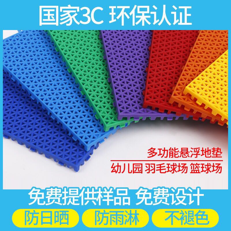 懸浮式拼裝地板采用成熟的高強度聚丙烯環(huán)保材料,有效解決地板熱脹冷縮問題的同時還具有穩(wěn)定的表面摩擦,抗紫外線添加劑被加入到每一塊地板中,能夠保障地板在長期受日光照射中不褪色,懸浮式的結(jié)構(gòu)設(shè)計加上堅固的加強型支撐腳結(jié)構(gòu),創(chuàng)造垂直的減震效果,防滑的表面可有效防止運動損傷,良好的球回彈性能和球速保證了地板運動性能,它可用于鋪裝理想的高性能籃球場、網(wǎng)球場、五人足球場、輪滑球場、乒乓球場以及排球、羽毛球等多功能球場。. 懸浮式拼裝地板在70攝氏度高溫下72小時無融化、無龜裂、無名下色差。